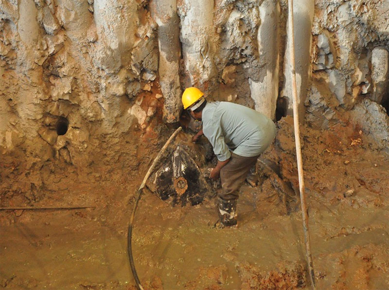 The scope is for Sea Water Intake & Outfall Pit, having sandwitch panel at bottom, excavation upto 14.5m depth.