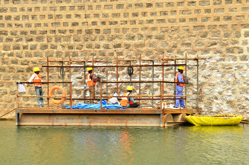 Shotcreting to U/s face, Drilling Grouting and Deep Pointing on Downstream face of Linganmakki Dam.