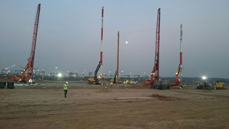 Fast track driven cast-in-situ piling (8821 nos.), 15.5m deep piles completed in four and half months. Unique feats at this project: record 211 piles in a single day, 40 piles installed by a single rig per day, 2665 piles driven in asingle month
