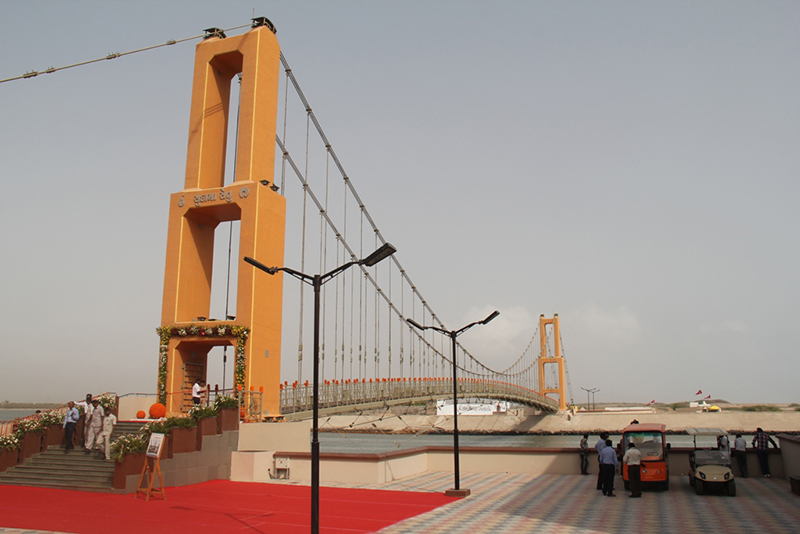 Constructed Suspension Foot Bridge – SudamaSetu at Dwarka, Gujarat.This pedestrian bridge constructed over Gomti river which connects JagatMandir of mainland Dwarka and Panchnad or PanchkuiTirth on the island in southeast of it. there are five sweet water well called Panchkui associated with five Pandava brothers of Mahabharata. Gomti river was crossed by boats till the construction of the bridge.
