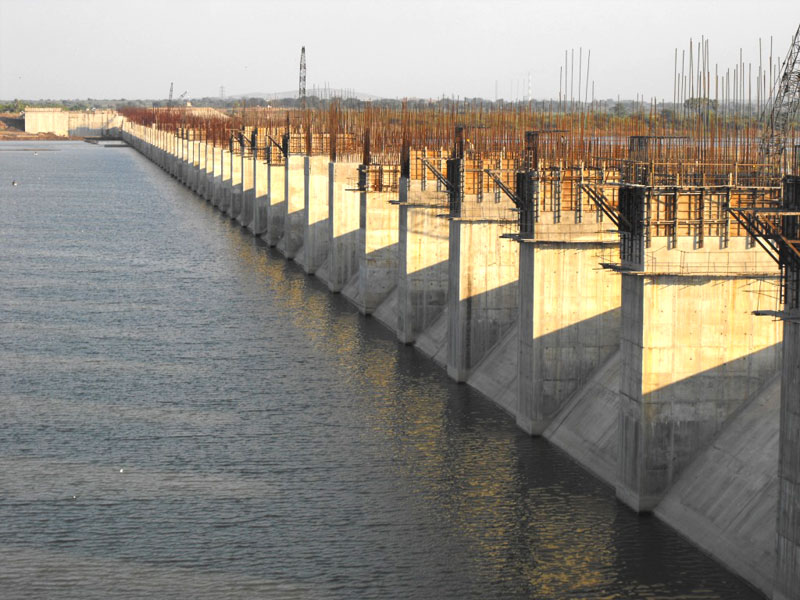 - Construction of new 25m height RCC intake structure including trash rack screens and stop log gate