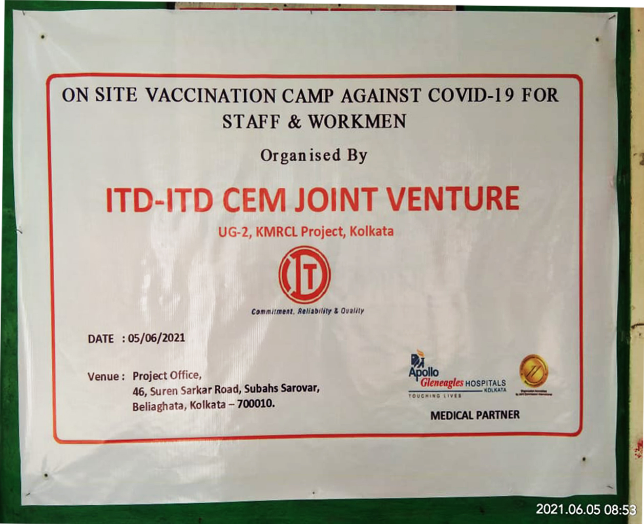 ITD – ITD Cem Joint Venture, UG2, Kolkata have organized vaccination drive at the project location successfully on Saturday 05th June 2021.