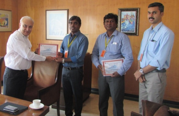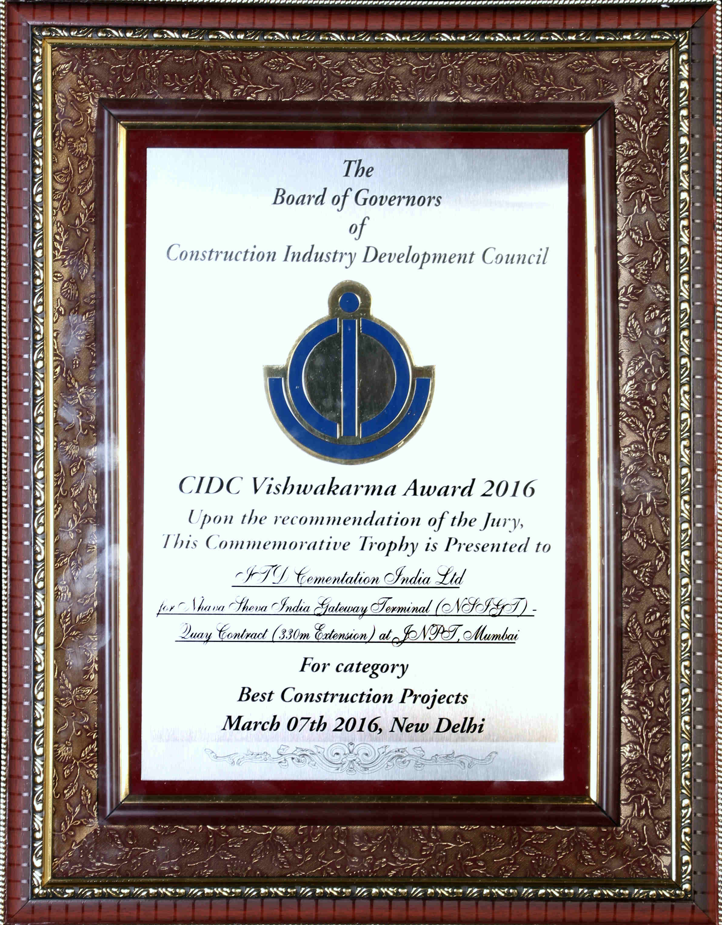 Mr. Anil Singh, Senior Vice President & Managing Director, DP World, Subcontinent presenting Safety Award & Trophy to our project manager for achieving more than 3.7 million safe man hours at DPW Quay Contract