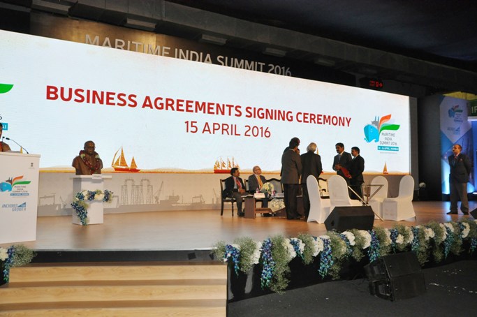 Our Managing Director, Mr. Adun Saraban and Mr. Jayanta Basu have signed the Contract Agreement with Visakhapatnam Port Trust to develop EQ2 to EQ5 Berths on EPC Model in presence of Hon. Minister of Shipping, Mr. Nitin Gadkari and Chairman and Vice Chairman of VPT on 15th April 2016