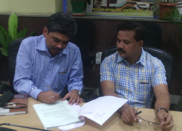 Our Mr. Ranjan Jaiswal has signed the Contract for KMRCL Project – Architectural Finishing of 6 Elevated Stations on 12th April 2016. This function was graced by the General Manager (C), Mr. N.C. Karmali of Kolkata Metro Rail Corpn. Ltd.