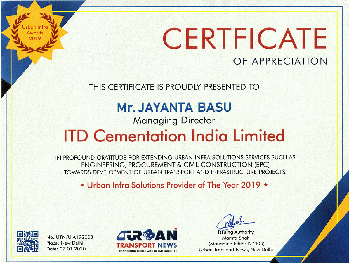 Our Coal Jetty Tangedco Marine Project at Udangudi, Tamil Nadu has won International Safety Award (ISA) from British Safety Council (BSC) with Distinction.